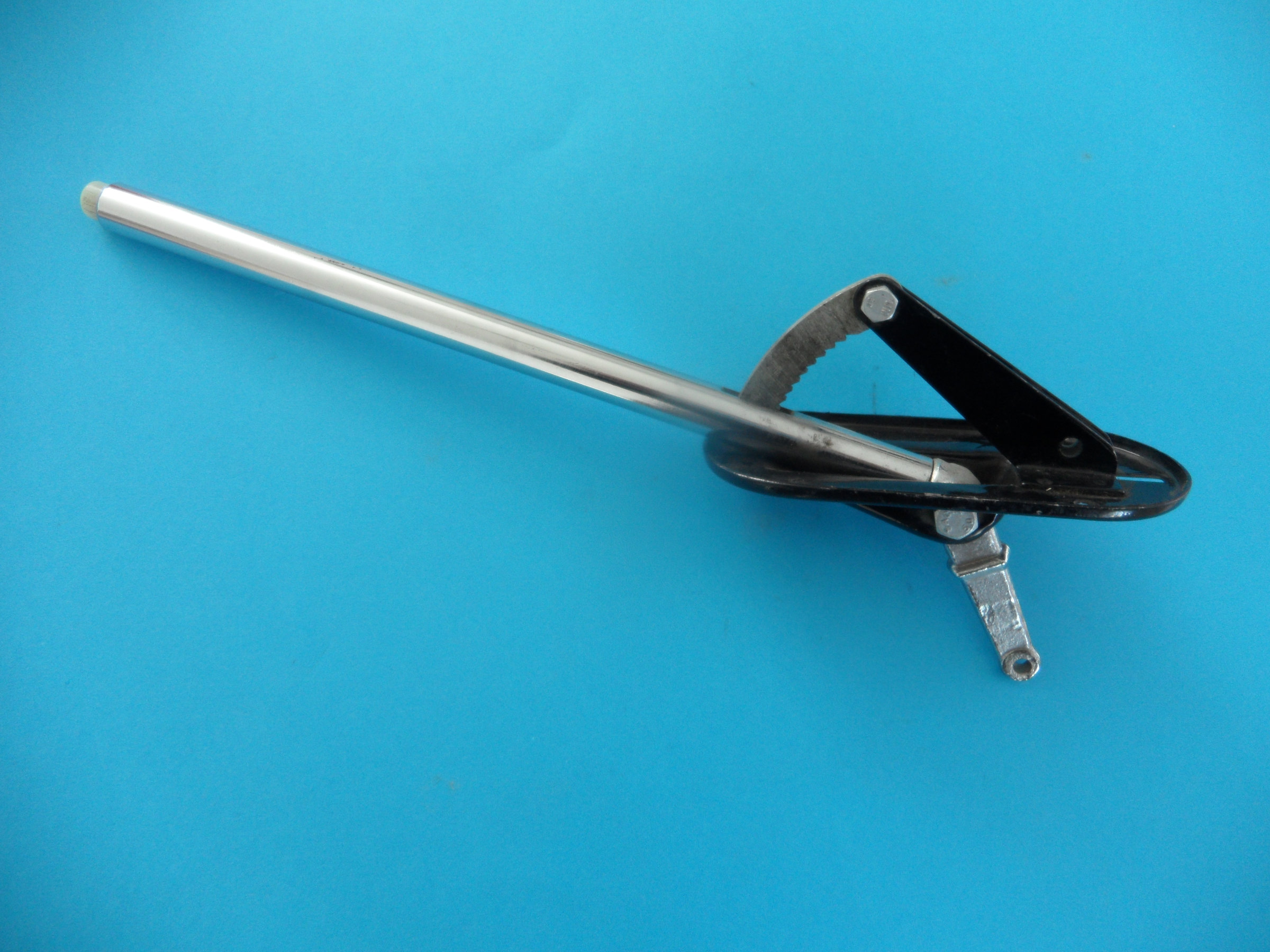Diese originale Halteplatte des Gaszugs ist - vereinfacht gesagt - für die Heckmotoren mit LINKS-SEITIGEM Vergaser, deshalb ungeeignet für R8G und 1400 (Vergaser rechtsseitig)..