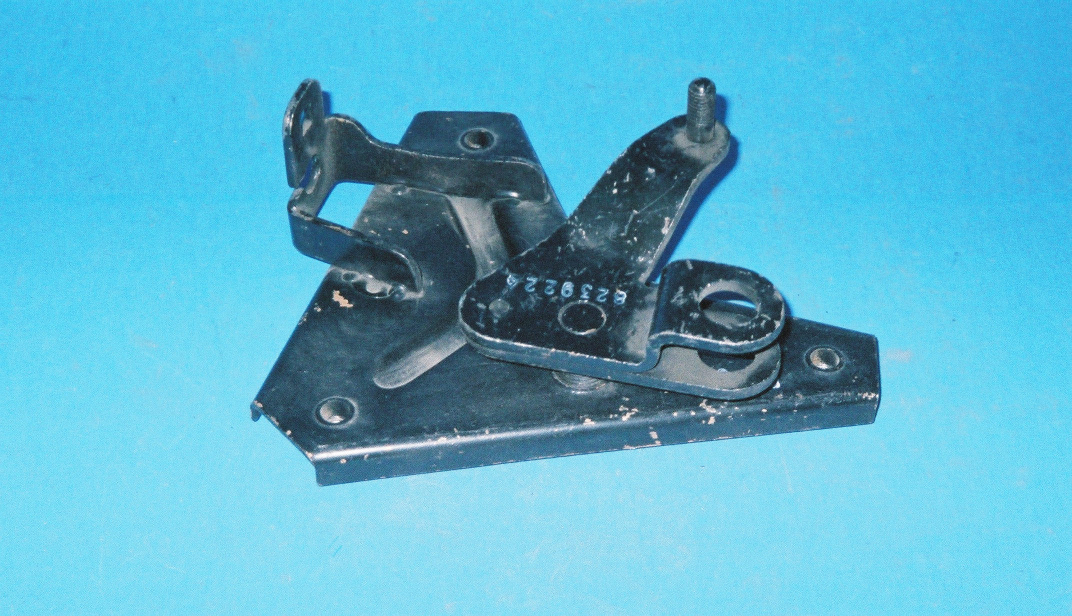 Diese originale Halteplatte des Gaszugs stammt von der Alpine A106.