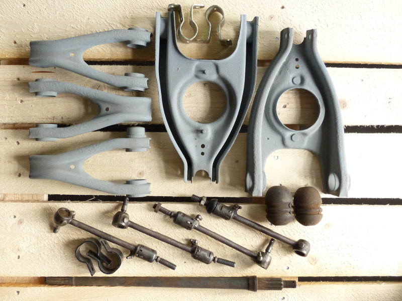 Mancher hebt alte Aggregate wie Bremssättel oder Bremszylinder auf, um sie später neu zu bestücken. Dazu sollen sie frei von Bremsflüssigkeit sein, denn diese nimmt Luftfeuchtigkeit auf, was wiederum zum Rosten der metallenen Teile führt. Kolben, Federn und Entlüfter sind möglichst separat in Petroleum und die neuen Gummiteile stets in Papier oder Pappe, dunkel und temperatur-neutral aufzubewahren. Ein großes Problem beim Restaurieren ist es, wenn mit dem Fahrzeug gelieferte Teile nicht zueinander passen (wollen). Nicht selten trifft das bei all dem zu, was der Verbindung zwischen Handbremsgriff und den Bremssätteln dient. Ein Element greift ins andere: der Griff führt über das Primärseil an die hintere Hebel-Einheit. Von dort führt das Sekundärseil an die Bolzen der Bremssättel links und rechts. Erinnern wir uns: seit Einführung der Scheibenbremse wurden von Dauphine über R8 bis hin zur Alpine 110 die Anschlussteile sowie auch die Seile mehrfach verändert. Die Vielfalt der Möglichkeiten führt nur theoretisch zu Schwierigkeiten. In der Praxis ist’s eher die schlechte Verfügbarkeit der entsprechenden Teile, die die Wahl zur Qual macht. Man muss „nur“ wissen, was wie zueinander gehört, bzw. wie man sich mit den Gegebenheiten (be)helfen kann. |