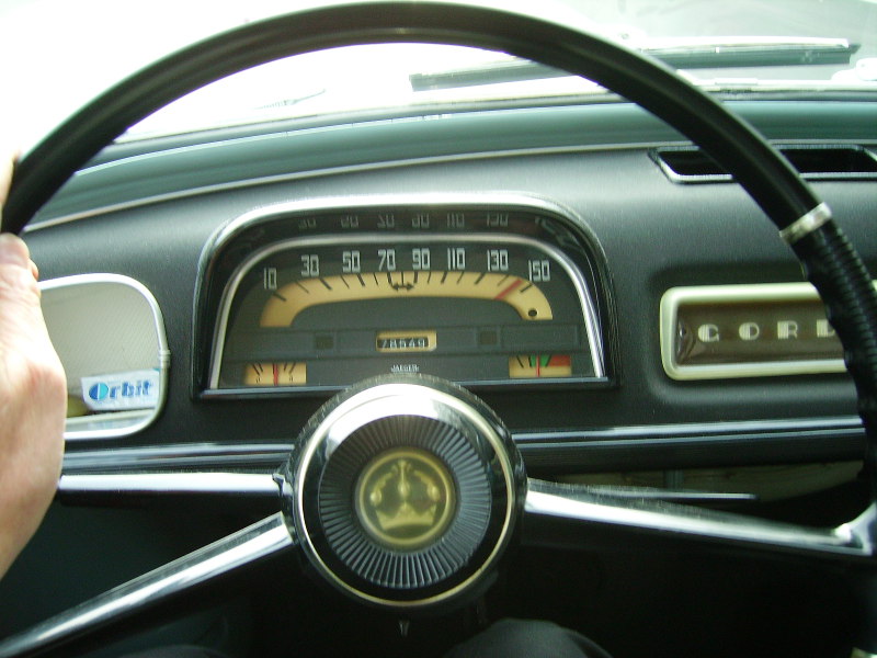 Doch diese Kraft bringt der Gordini natürlich nicht gratis auf den Boden. Ein Ruckeln, das sofort wieder meine Zweifel weckt, gibt dem Fahrer zu erkennen, dass der Tank leer ist. Zu meiner Überraschung lässt er nun aber nicht den Wagen ausrollen, um den Reserve-Kanister hervorzukramen. Er kuppelt aus und greift schnell vor sich auf den Boden. Dort legt er einen kleinen Hebel um, und nach ein paar Sekunden geht das Stottern des Motors wieder in das vertraute Brummen über. Dieser Gordini hat von allem etwas mehr als ein gewöhnlicher Wagen: neben einem 5. Gang also auch einen 2. Tank! Und zwei Tankuhren in einer, denn nach Betätigen eines Kippschalters zeigt sie nun wieder "voll" an. 36 Liter hinten, 24 Liter vorn - das reicht bei zügiger Fahrt für etwa 500 Kilometer.