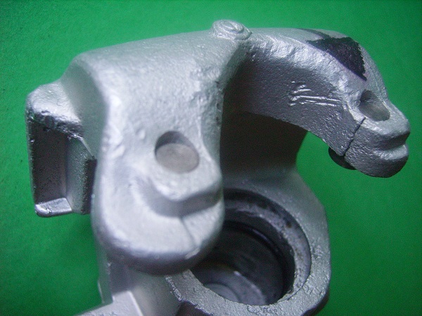 Grundsätzlich ist zu bedenken, dass das Austauschen der Dichtringe irgendwann ein Ende hat und neue Sättel erforderlich sind. Denn wie jedes Metall „altert“ auch Aluminium und nach –zig Jahrzehnten wechselhaften Einsatzes besteht das Risiko zum Materialbruch (siehe Foto!) | ||